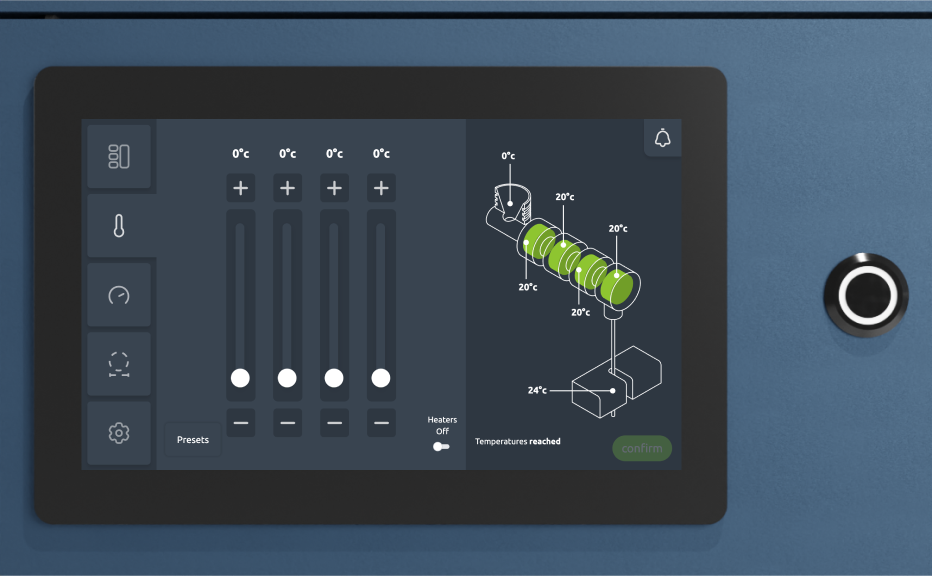 - Temperature control across multiple heating zones for reliable processing across different materials